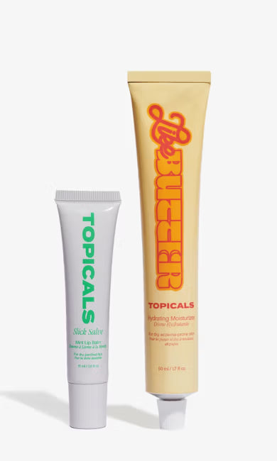 A two-step routine that soothes, hydrates, and protects from face to lips. Use Like Butter Moisturizer daily to calm irritation, restore dry skin, and support the skin barrier. Apply Slick Salve Mint Lip Balm as needed to keep lips soft, smooth, and nourished. notionvc: 40c24c40-0f2e-4d60-bdfc-cf31e92a32ef