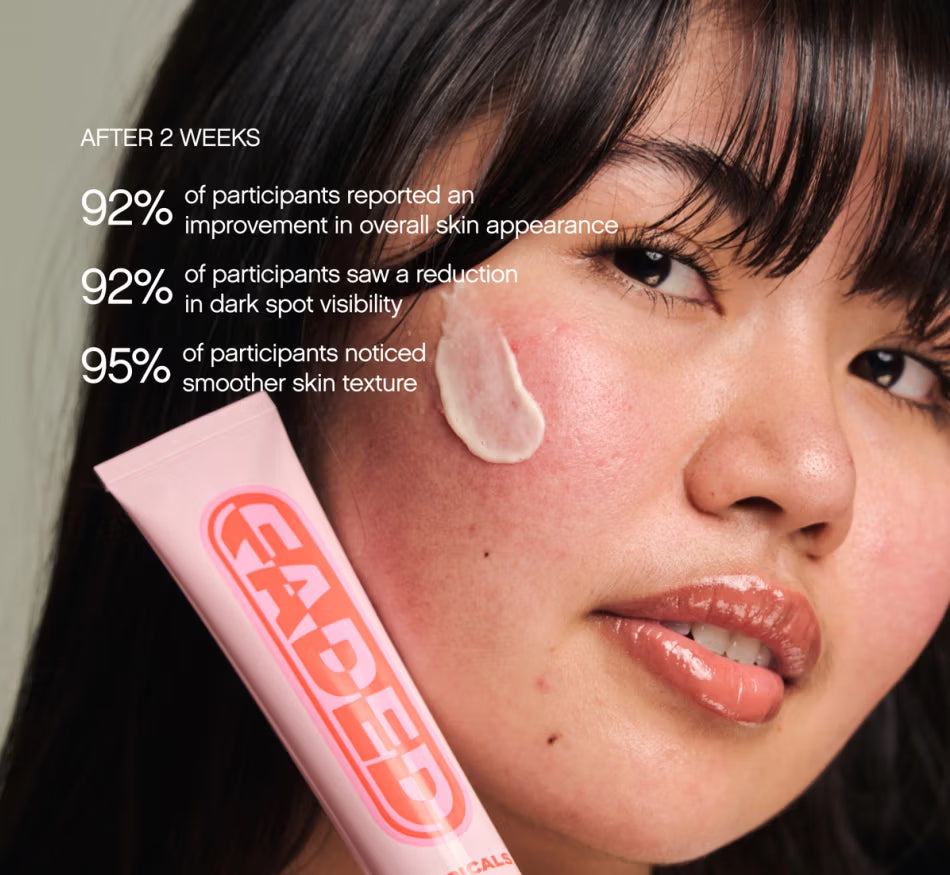 This hyperpigmentation-safe serum visibly reduces stubborn discoloration, post-blemish marks, scars, and spots—for all ethnicities and skin shades. Gentle enough for daily use, it produces visible results in as little as two weeks.